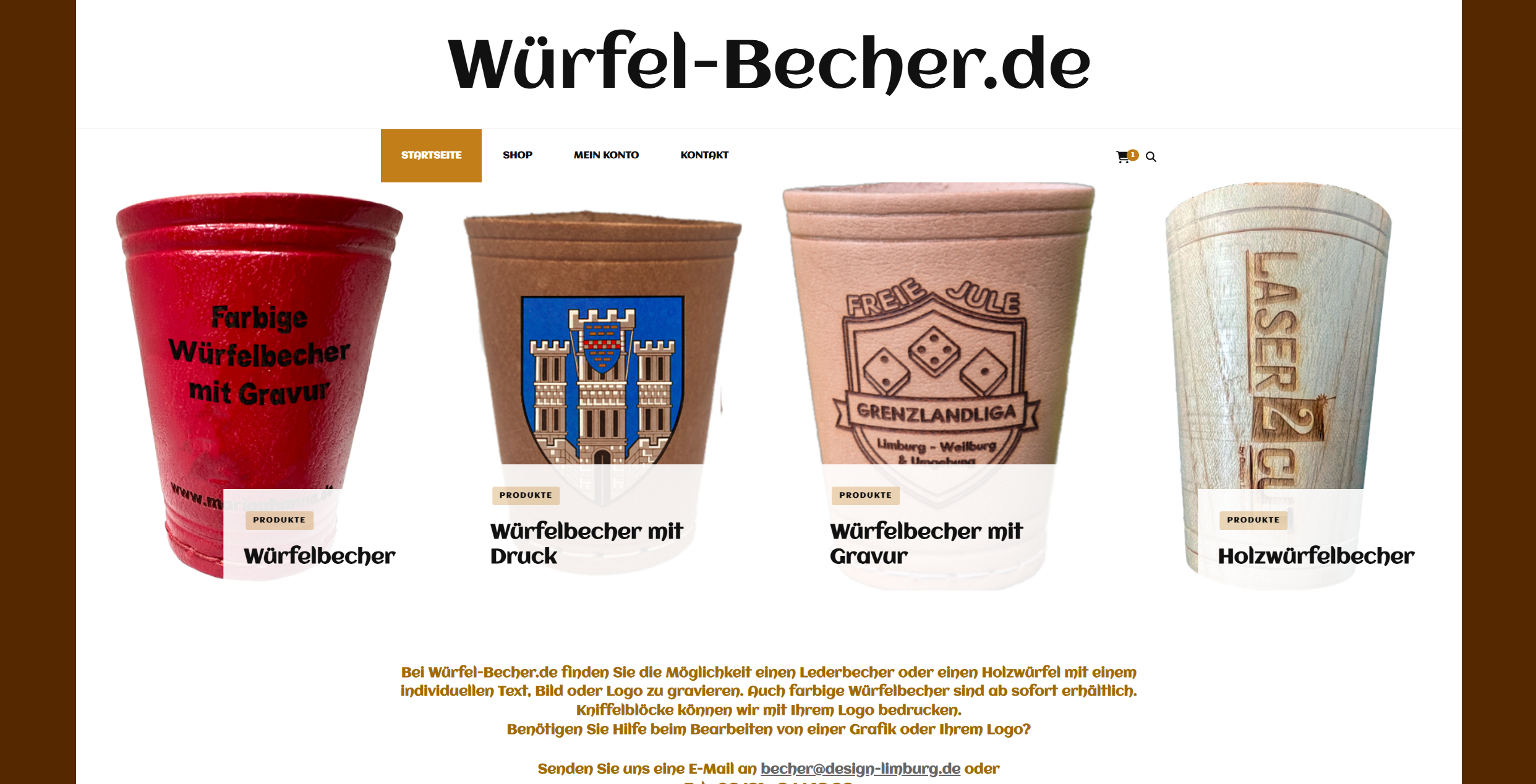 Auf würfel-becher.de findest du hochwertige Würfelbecher, die individuell graviert werden können – ideal für Vereine, Turniere oder als persönliches Geschenk. Jeder Becher wird mit Präzision veredelt und verbindet Funktionalität mit einem einzigartigen, persönlichen Design.